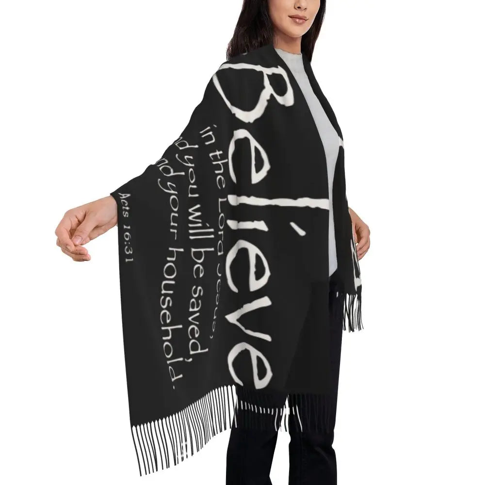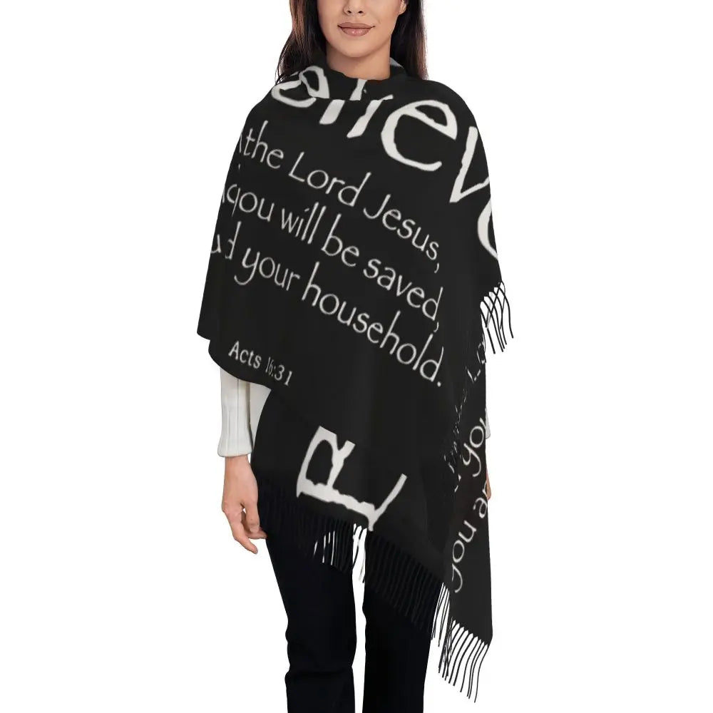 Wrap yourself in comfort and inspiration with this Faith Inspired Shawl. Designed for women who walk in grace, this oversized polyester shawl doubles as a scarf or light wrap—perfect for prayer time, church events, or everyday elegance. Its generous length offers styling versatility, from shoulder draping to full coverage warmth.