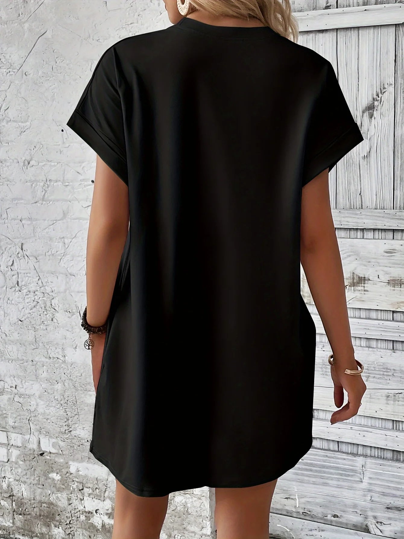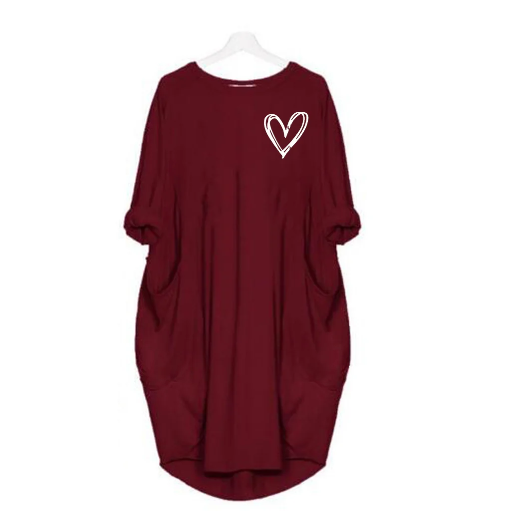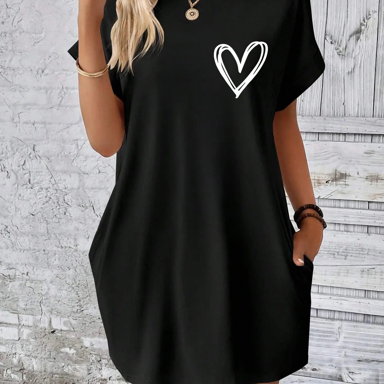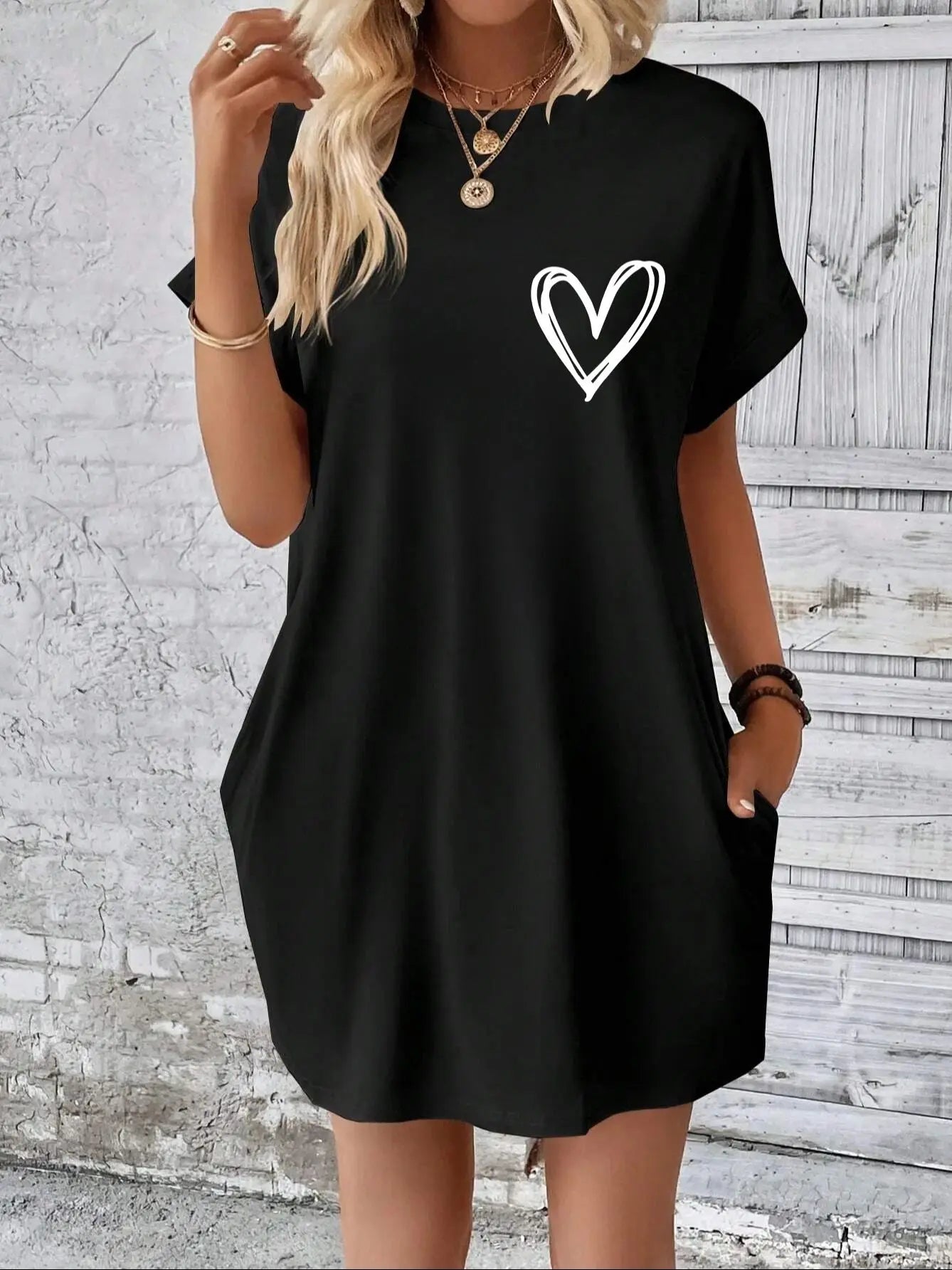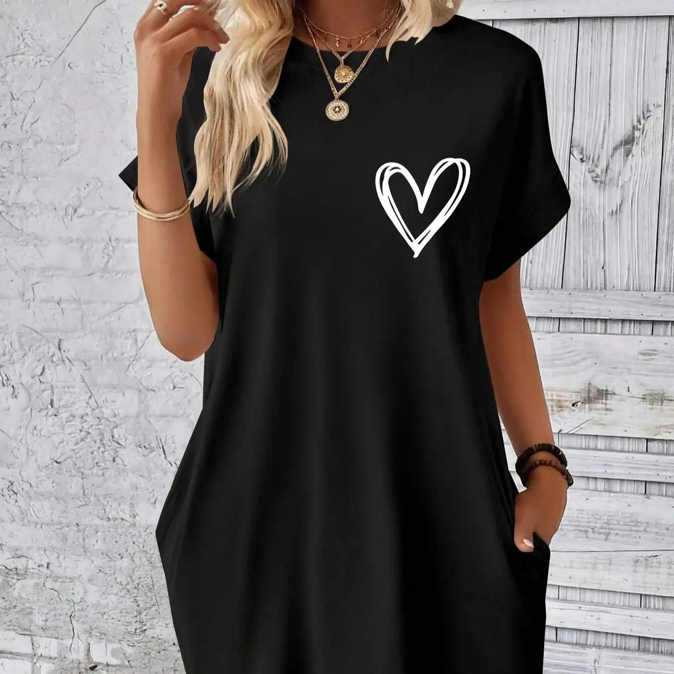 Heart Emblem Dress – Women’s Casual Above-Knee Loose Fit Shirt Dress